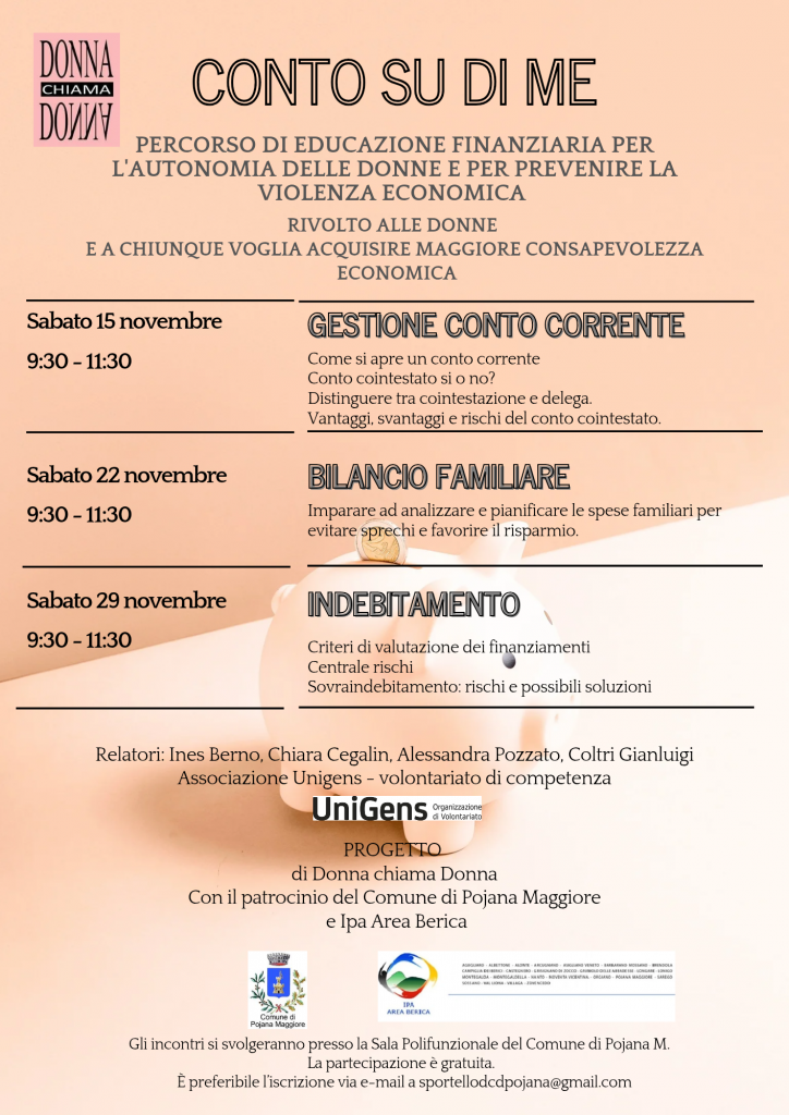 Nel mese di novembre, in occasione della Giornata internazionale per l’eliminazione della violenza contro le donne, prende avvio un percorso dedicato allo sviluppo dell’autonomia finanziaria femminile.