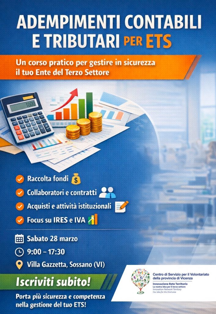 Se fai parte di un Ente del Terzo Settore e vuoi gestire in modo corretto e sicuro gli aspetti fiscali e contabili della tua organizzazione, questo corso è per te.
